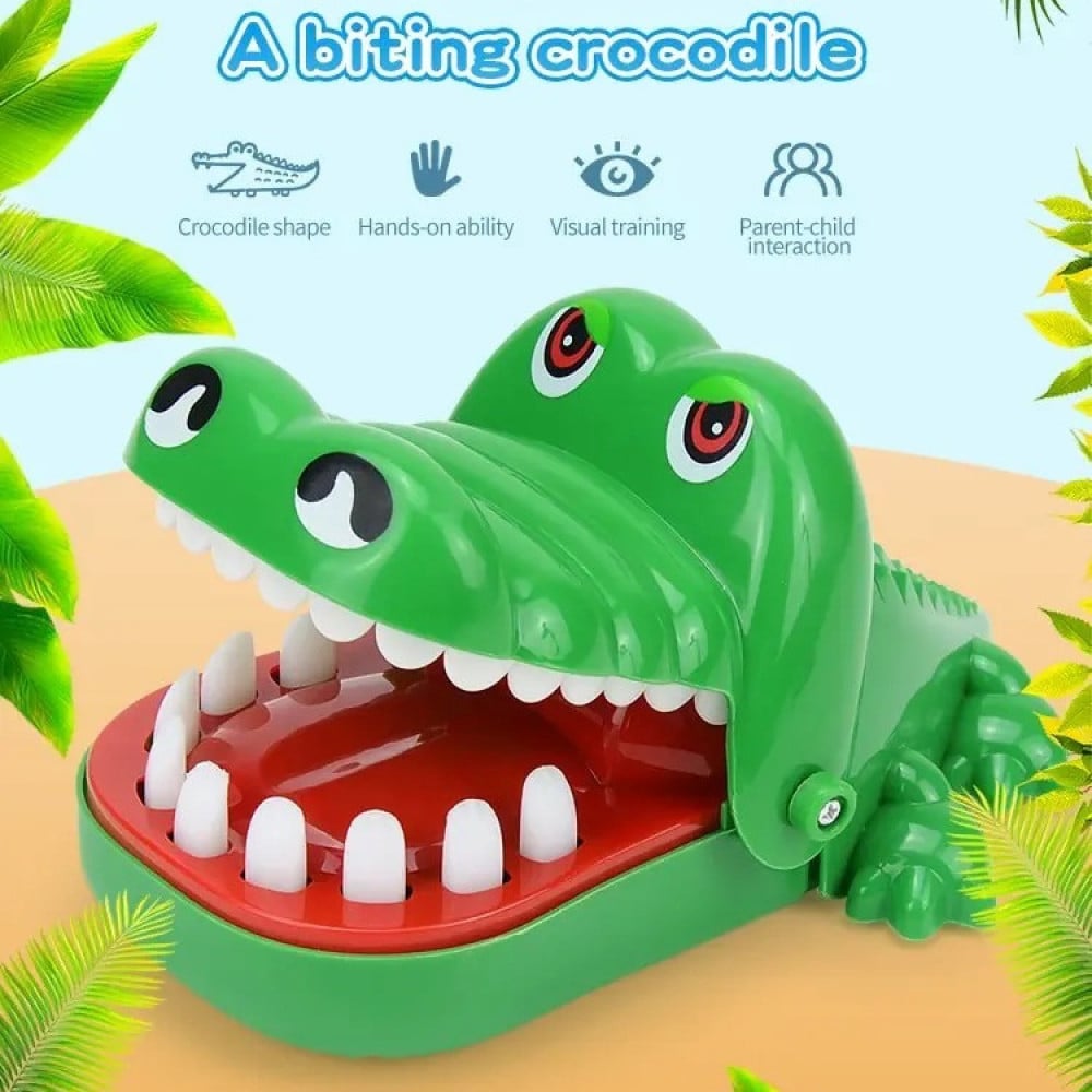 لعبة عض الأصابع بتصميم فم تمساح مضحك للأطفال والبالغين ولا تحتاج إلى بطاريات. حيث تبدأ رحلة البحث عن السن الذي يزعج التمساح ؟ يمكنك معرفة ذلك عن طريق الضغط على أسنانه بإصبعك واحدًا تلو الآخر. سوف يعضك التمساح بقوة إذا لمست السن الملتهب.
