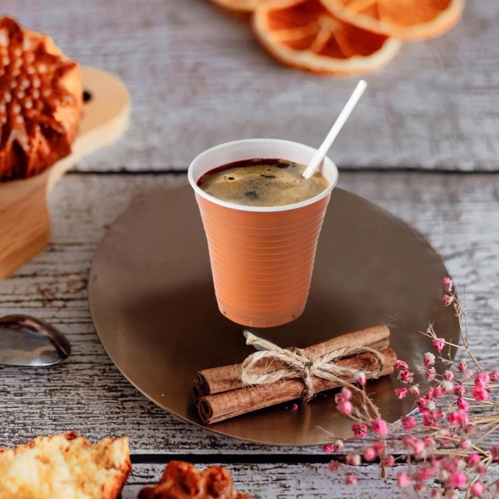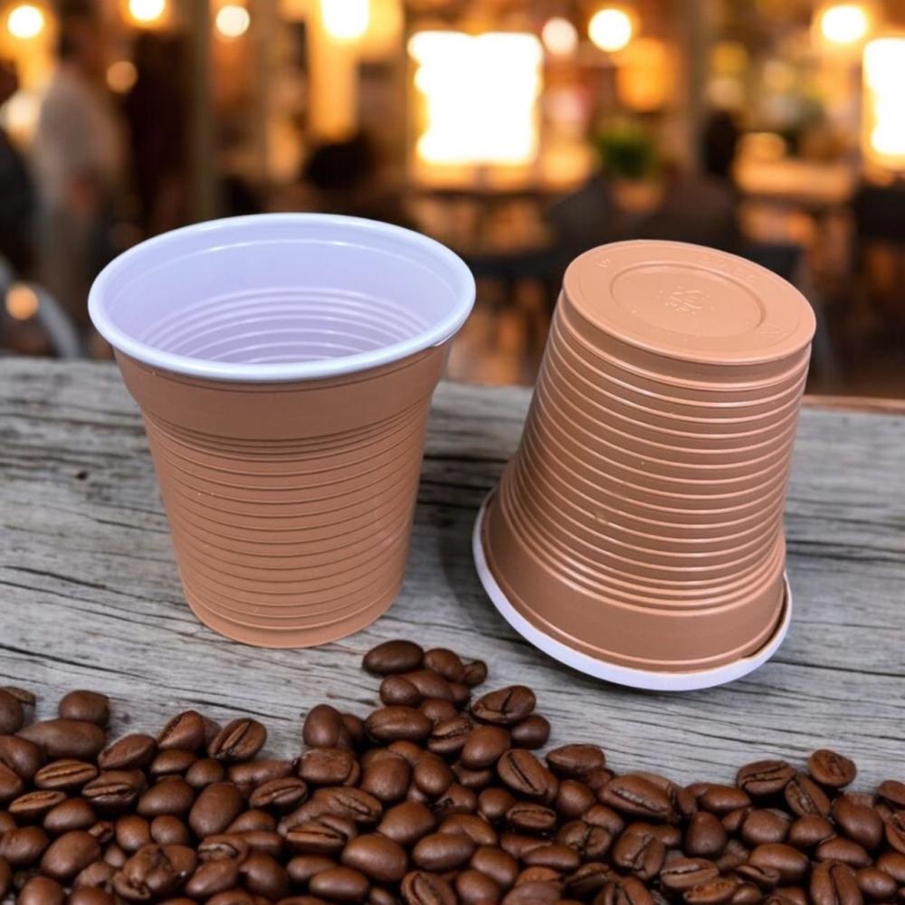 كرتون اكواب قهوة بلاستيكية (1000 حبه) باللون البني الخارجي والابيض الداخلي | 166ml