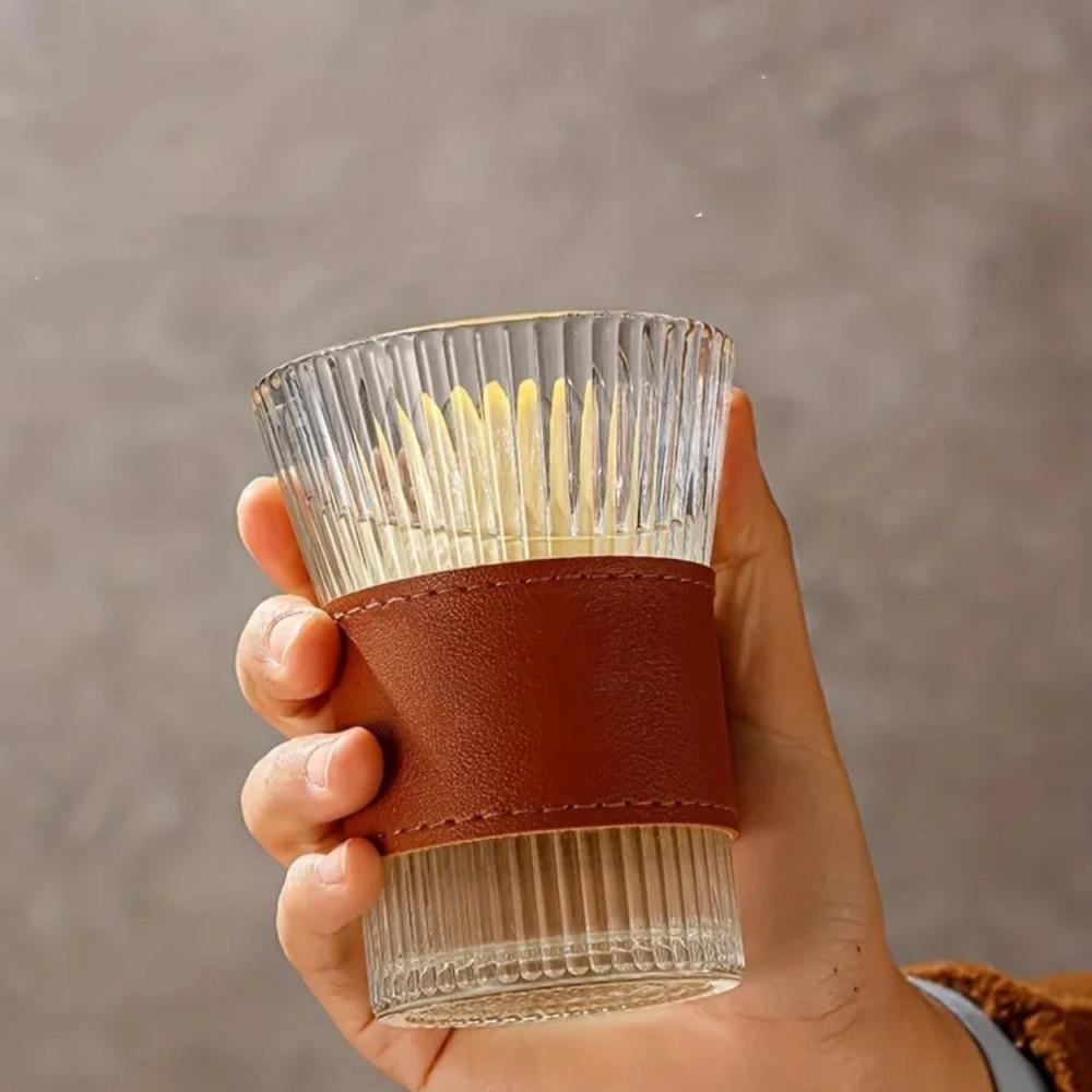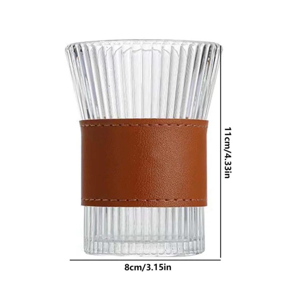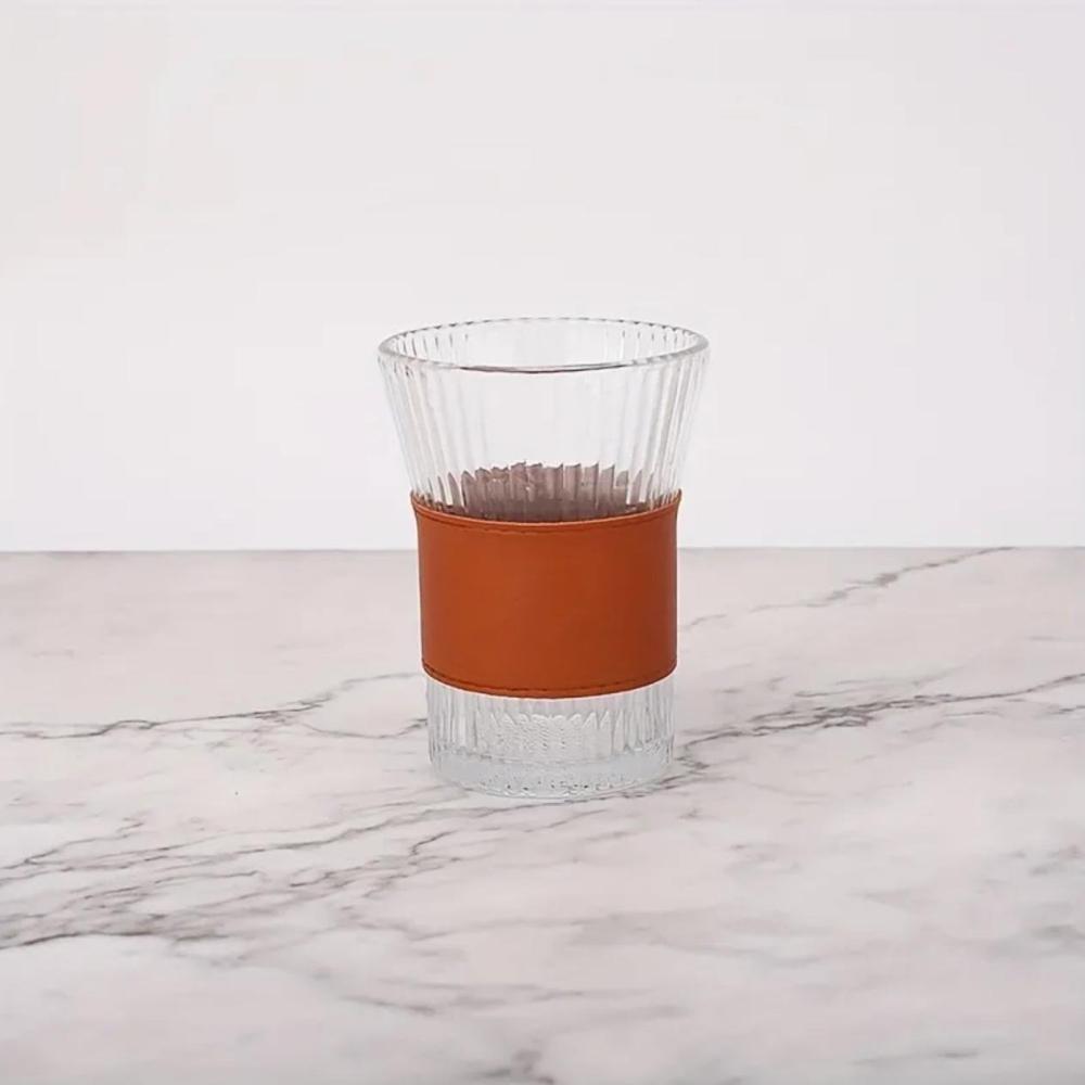 - كوب قهوة زجاجي عازل للحرارة مع حلقة مصنوعة من الجلد