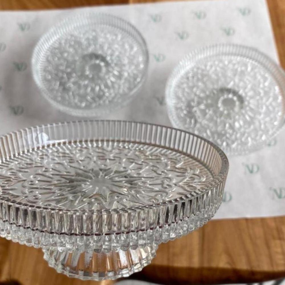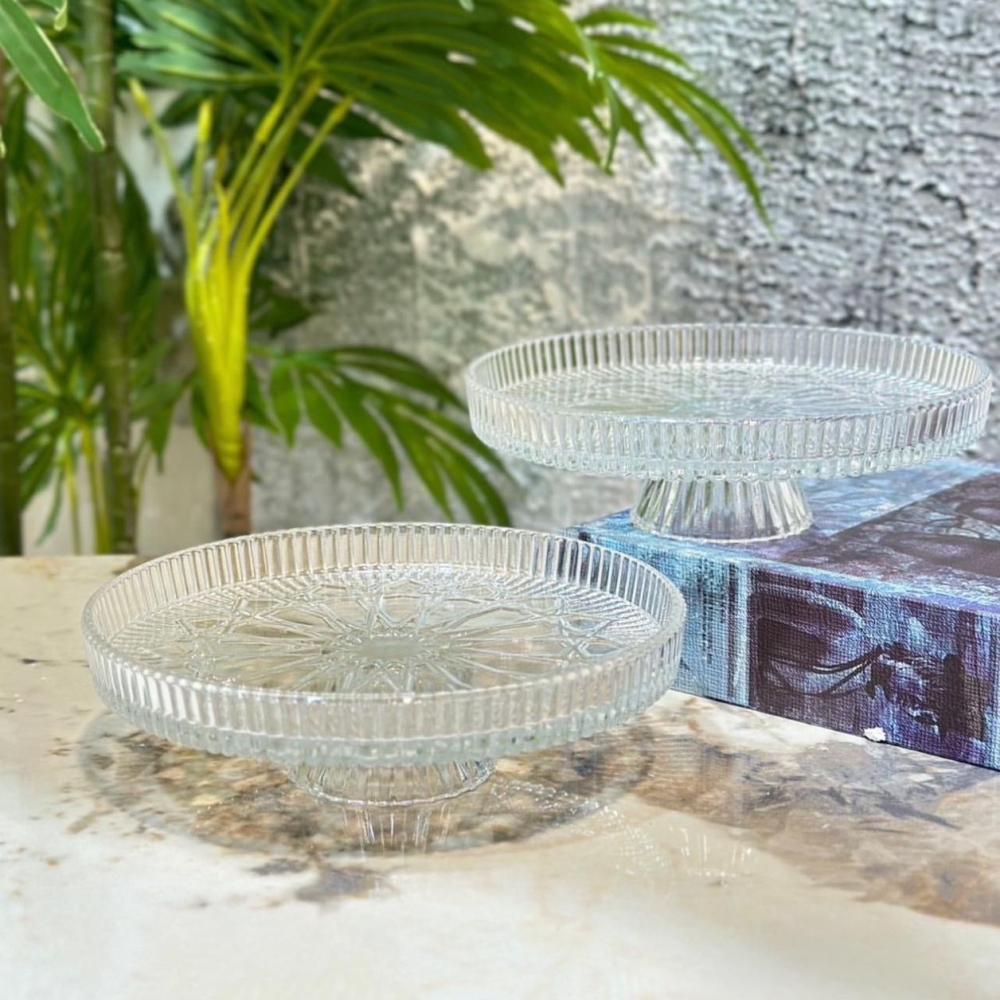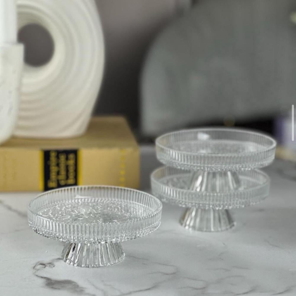 طقم صحون تقديم زجاج بقاعدة (متوفر حجمين)