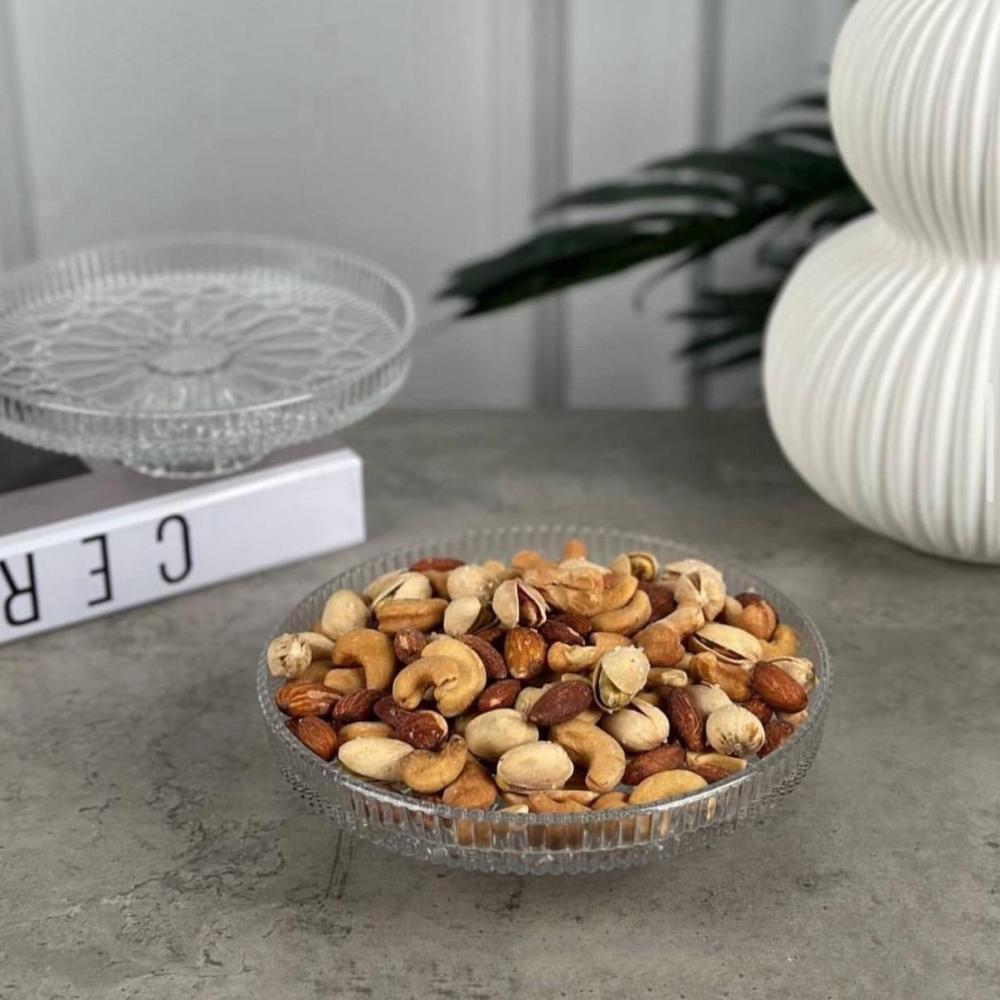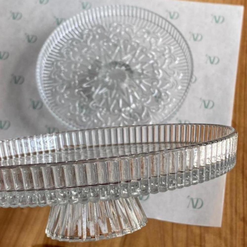 صحن زجاجي بقاعدة هو قطعة أنيقة وعملية تضيف لمسة من الفخامة والرقي لأي مناسبة أو ديكور منزلي، يتميز الصحن بتصميمه الزجاجي الشفاف المزخرف مع قاعدة متينة، مما يضفي لمسة من الأناقة على أي طاولة، مناسب لتقديم التمور والحلويات والشوكولاتة والمقبلات بطريقة جذابة.
