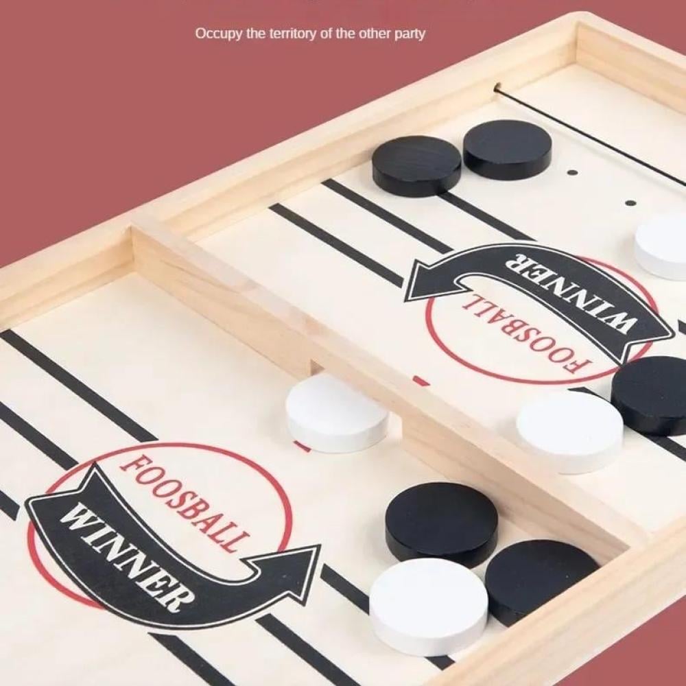 لعبة جديدة ومثيرة على الطاولة لجميع أفراد الأسرة حيث يتم استخدم الشريط المطاطي لإطلاق جميع الاقراص من خلال البوابة الصغيرة ،إلى نصف منطقة الخصم ، أول لاعب يخلي منطقته من جميع الاقراص سيفوز بالجولة، اربح 3 جولات واربح اللعبة.