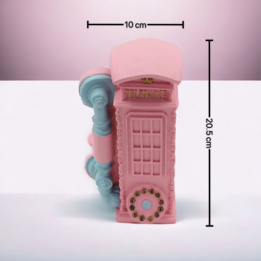 هذه التحفة الفنية مصممة على شكل هاتف كلاسيكي بلون مودرن، تتميز بتصميمها الإبداعي الذي يشبه الهاتف القديم، مما يضفي لمسة من اللطافة والأناقة.