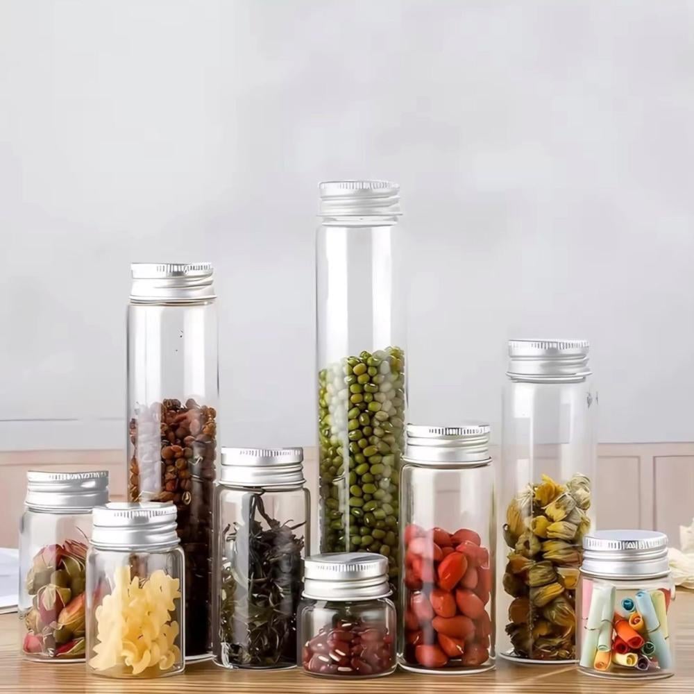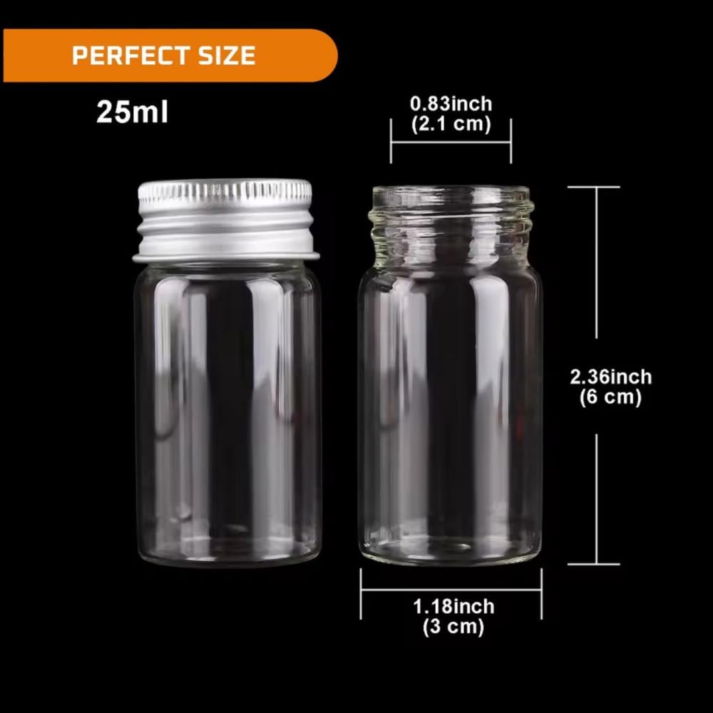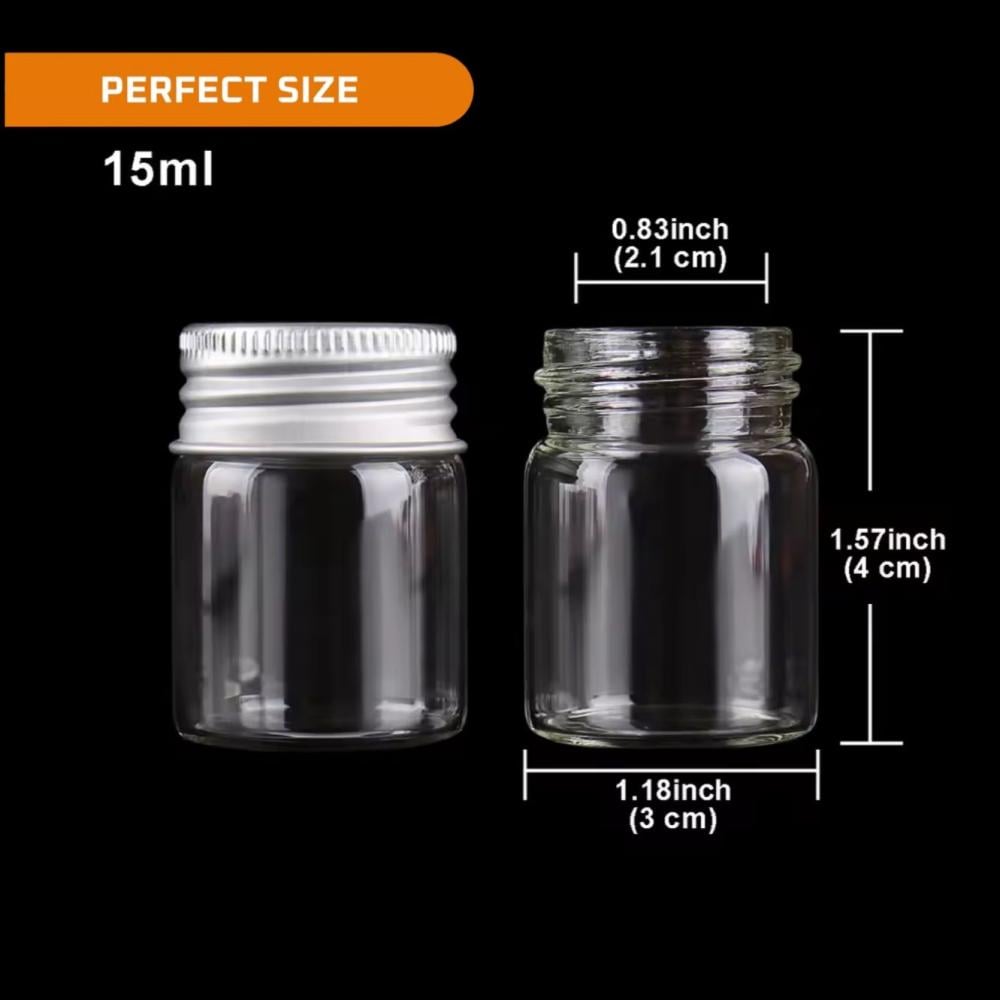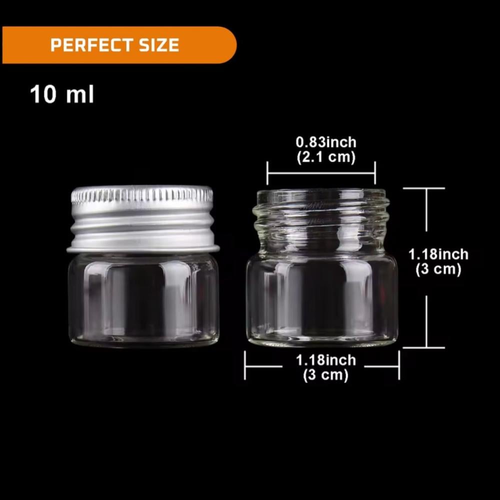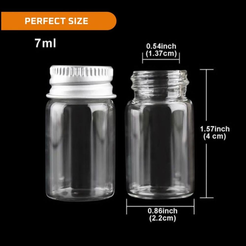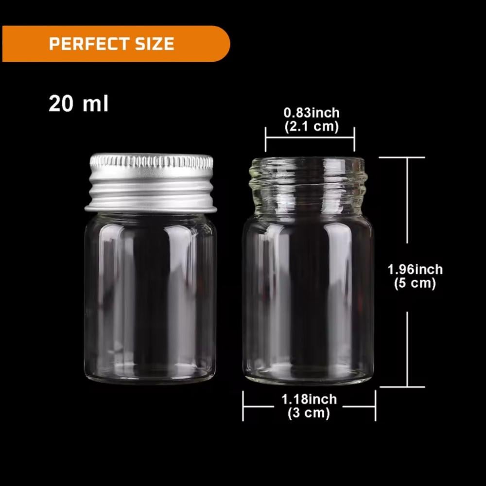 تعتبر هذه القوارير الزجاجية الصغيرة الشفافة عالية الجودة والمزودة بأغطية مصنوعة من الالومنيوم محكمة الإغلاق. مثالية للتوزيعات والتخزين والعرض والديكور، ويمكن استخدامها ايضاً كزجاجات عينات وتقديمات الصوص.