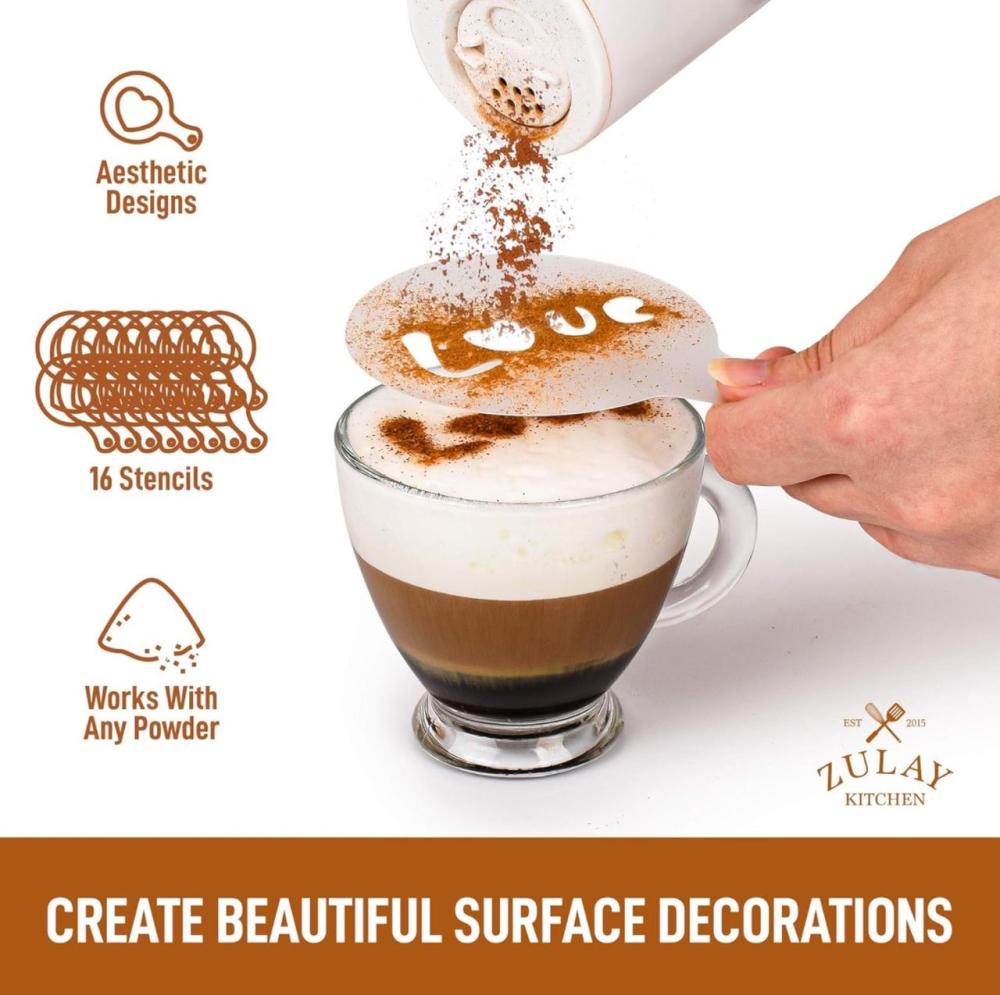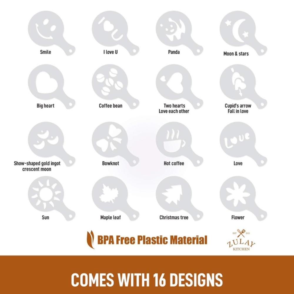 مجموعة قوالب الرسم من 16 قطعة للتصميم على القهوة والحليب والكعك
