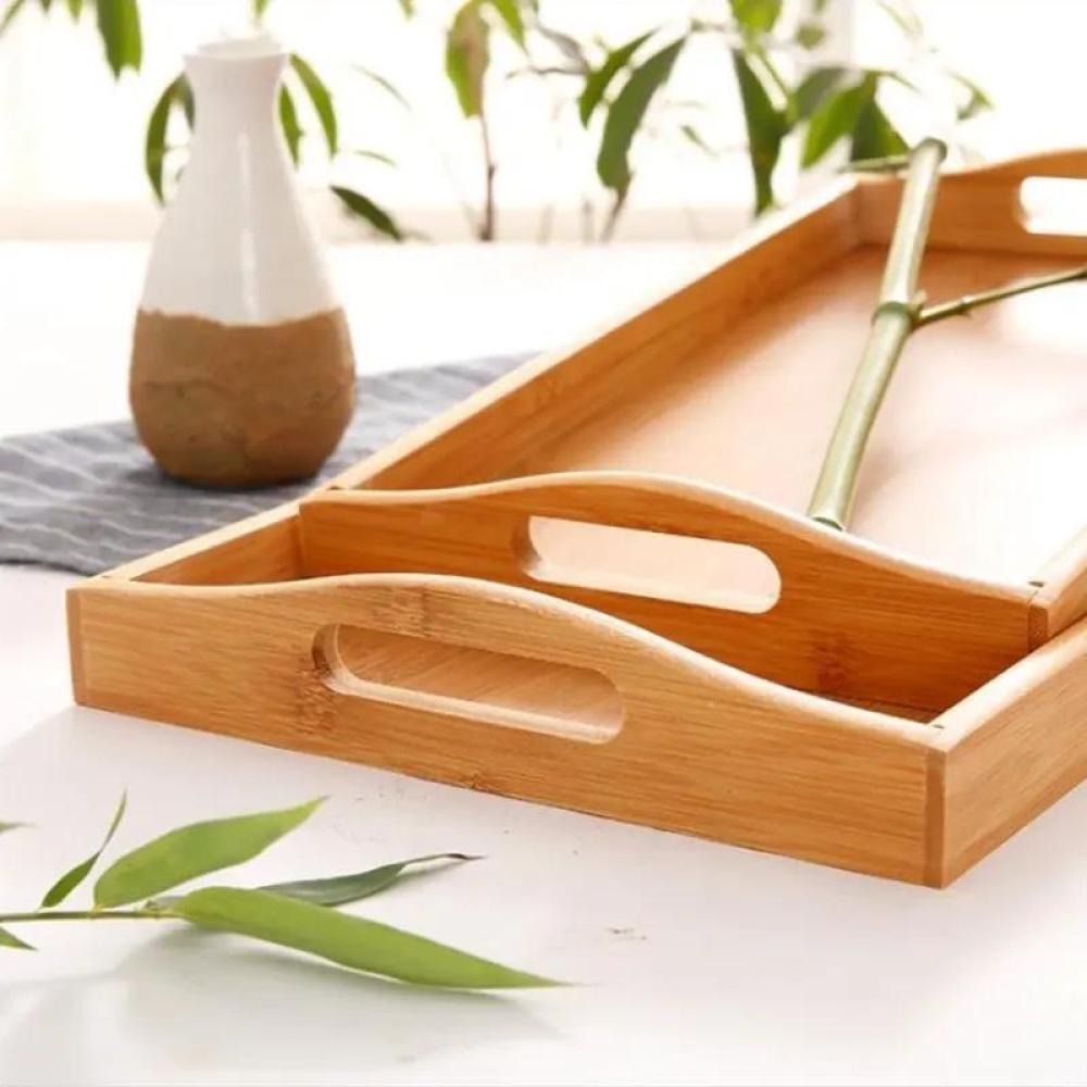 صواني تقديم خشب مستطيلة بمقابض (متوفر 3 احجام)