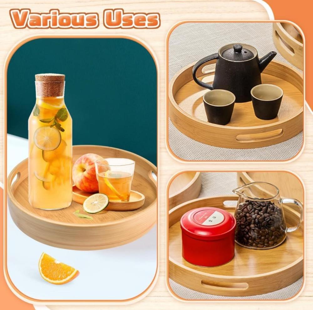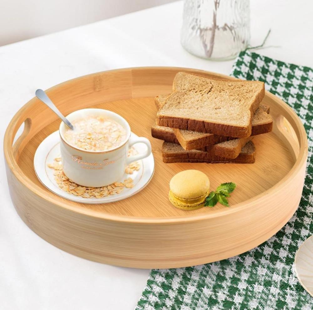 صواني تقديم خشب دائرية بمقابض (متوفر 3 احجام)