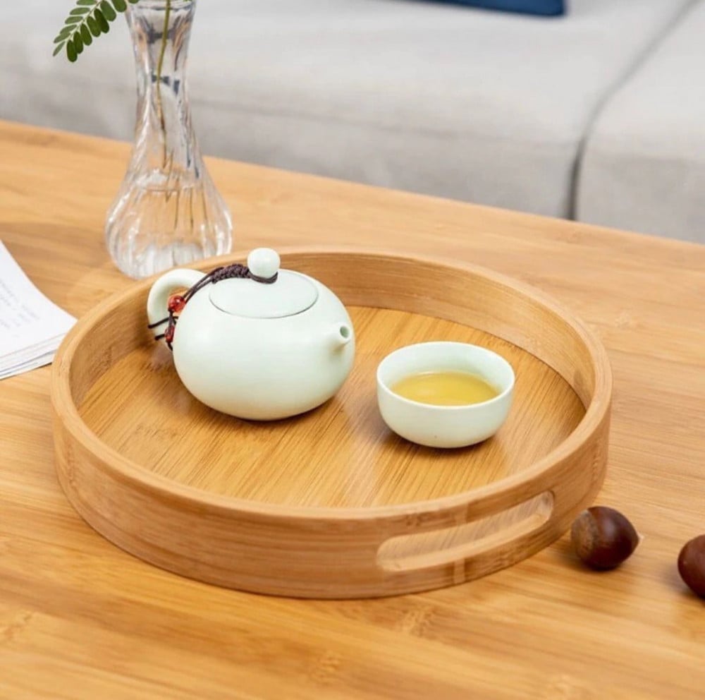 صينية تقديم فريدة حيث تعتبر إضافة رائعة لتقديماتك. بتصميم خشبي جذاب، هذه الصينية تجسد جاذبية ريفية جميلة. مصنوعة من الخيزران المتين بثلاث احجام مميزة.